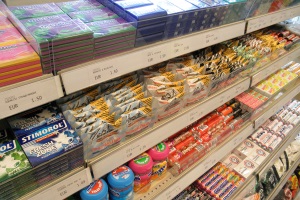 Boulangerie/viennoiserie, sandwichs et boissons diverses, sucreries, Chewing-gums, chips