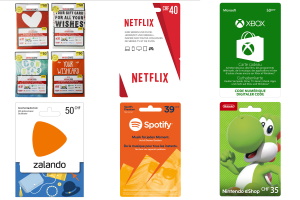 Recharge crédit téléphonique, Prepaid, bon cadeau (Gift card) comme: Wishcard, Salt., M-Budget, Netflix, Spotify, Zalando, etc...